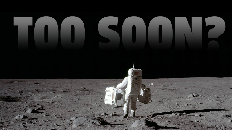 I hope that attitude of complacency is something maybe we have outgrown. I’m hoping that this 50th anniversary of humankind’s greatest triple-dog-dare with ourselves will make us take a moment and realize, that, holy shit, the moon landing was sort of a historical fluke the likes of which we may never actually see again.