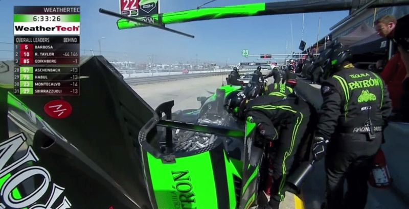 The Tequila Patrón Extreme Speed Motorsports team has had thoroughly lousy luck this year at the 12 Hours of Sebring, but it’s mostly been on the No. 2 car. It’s the No. 22’s turn, though, as something in the engine bay had to be spritzed with a fire extinguisher when it came in to the pits.