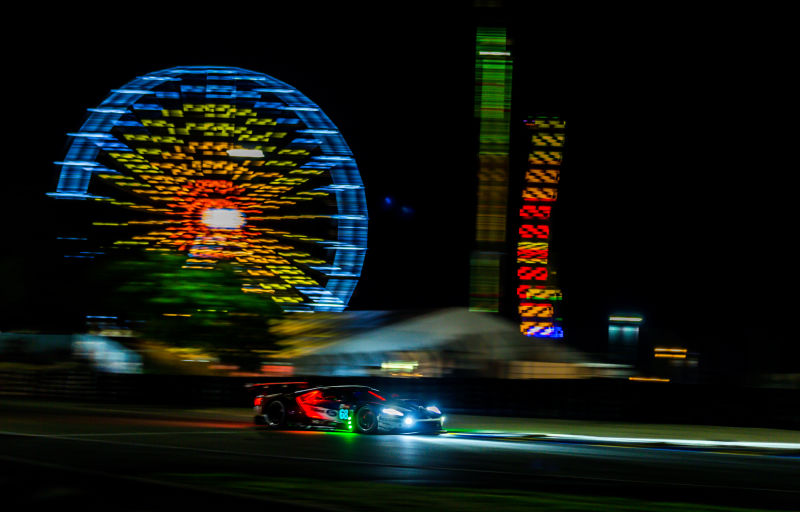 A lap behind them is the No. 91 Porsche GT Team entry piloted Gianmaria Bruni, Richard Lietz, and Frederic Makowiecki. They’re aiming to keep it that way, since their nearest competitor, the Ford Chip Ganassi Team USA No. 68 is 43 seconds behind them. The No. 68 is driven by Joey Hand, Sebastien Bourdais, and Dirk Muller.