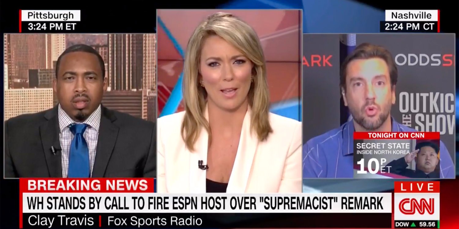 Clay Travis of Fox Sports and Outkick the Coverage left CNN anchor Brooke Baldwin stunned on Friday by making an off-color remark during a segment about ESPN’s political controversy.