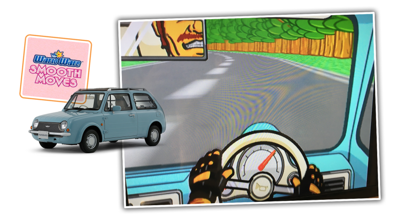 The game is from 2006, a fun and goofy Nintendo game called WarioWare Smooth Moves. One of the minigames involves driving a car, and this is what it looks like: