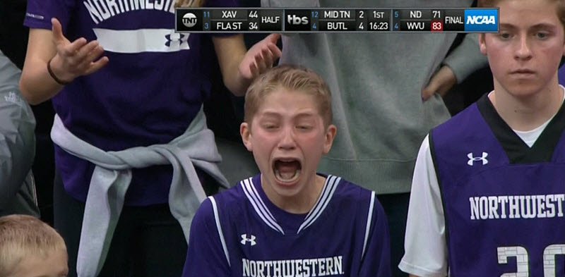 Northwestern has become the darlings in their first-ever NCAA Tournament, and while Julia Louis-Dreyfus has grabbed most of the headlines — her son is a walk-on on the team — she has been trumped by one young fan whose emotional roller coaster summed up their tournament run.