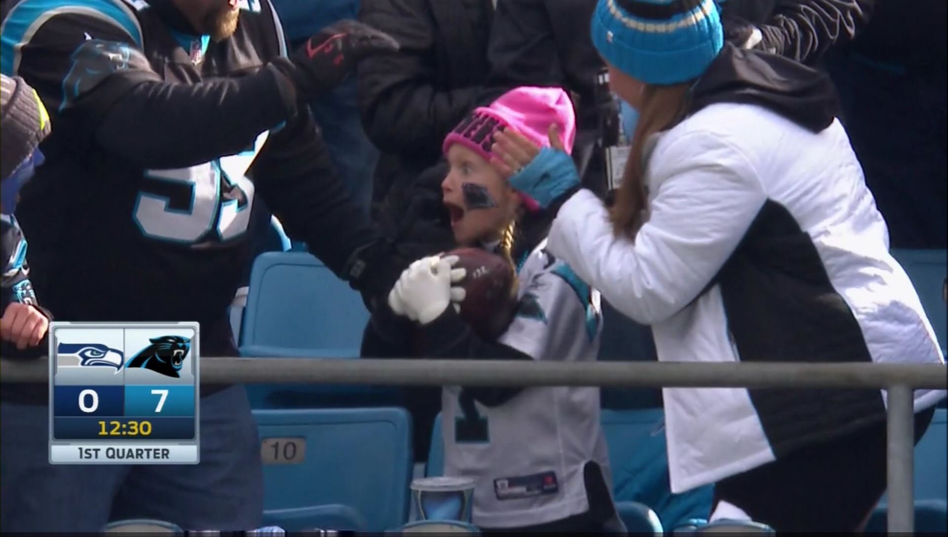 But the best moment came after the touchdown run, when Stewart went to the stands and gave the football to a young girl. Her reaction was absolutely fantastic.